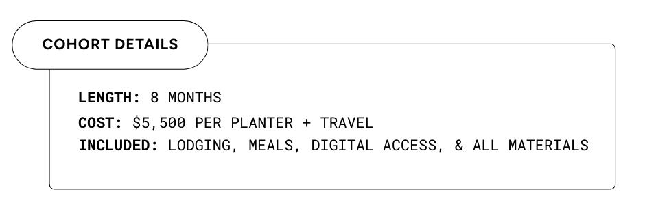 Church planting can be both exhilarating and exhausting. This cohort provides a structured rhythm of learning, reflection, and community—helping you grow as a leader while staying spiritually and emotionally grounded. You’ll gain actionable strategies, build friendships with fellow planters, and receive wisdom from experienced practitioners who’ve walked the path before you. This is not just training; it’s a community of encouragement and clarity for the mission ahead.